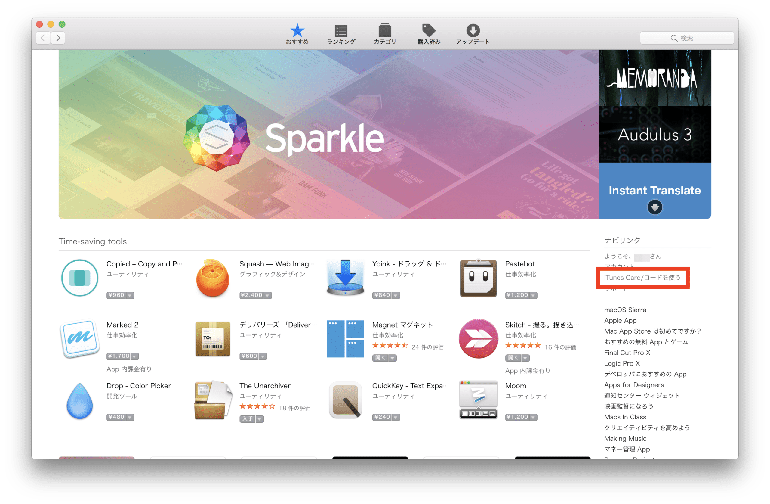 . Apple business manager や apple school manager に参加している組織は、取引のたびに、配布形態として管理配布または引き換えコードのいずれかを選択できます。. まず、mac app store にアクセスし、右サイドバーにある「itunes card / コードを使う」をクリックします。.